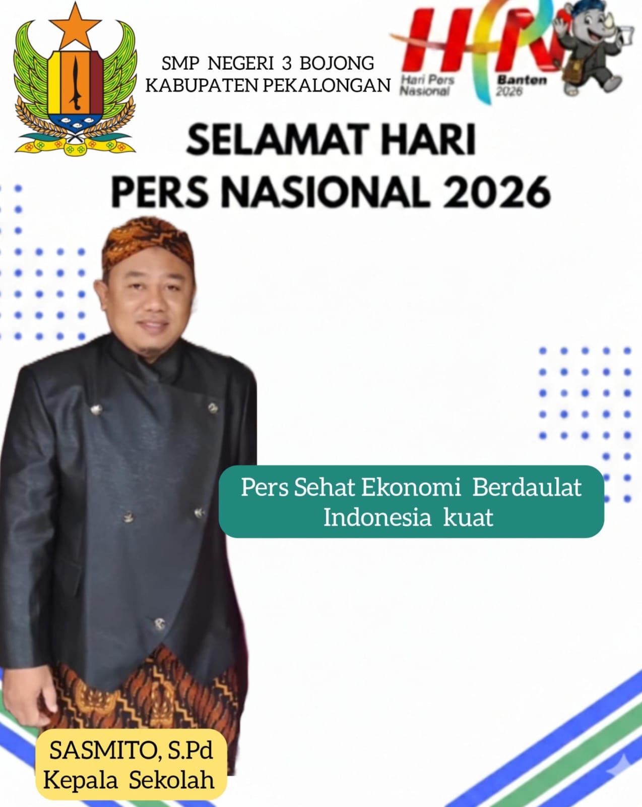 Kepala Sekolah SMP Negeri 3 Bojong Pekalongan Samito, S.Pd Mengucapkan “Selamat Hari Pers Nasional 2026.