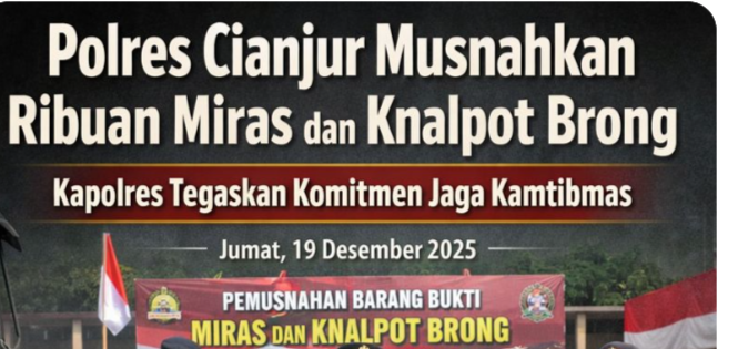 Pemusnahan barang bukti ini merupakan hasil dari operasi rutin yang ditingkatkan (KRYD) serta razia gabungan yang dilaksanakan jajaran Polres Cianjur dalam rangka menjaga keamanan dan ketertiban masyarakat (kamtibmas), khususnya menjelang momentum akhir tahun.